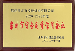 喜訊!鴻佳機械同時榮獲泉州市、南安市2020-2021年度“守合同重信用企業(yè)”榮譽稱號
